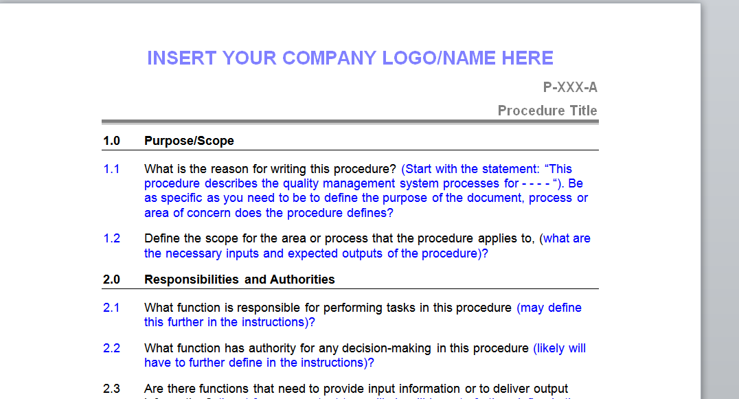 - T-001 Procedure Template