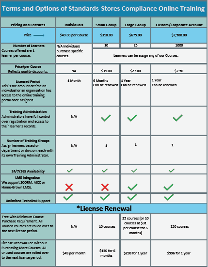 Our online training works through a Learning Management System (“LMS”). Learning management systems help your organization deliver material to students, administer tests, track your employees’ progress, and manage record-keeping. You will not have to schedule a time for everyone to be present at the same time, and no one will need to give a presentation. Users can complete the training anytime within the license period (usually one year, but we also offer extensions).